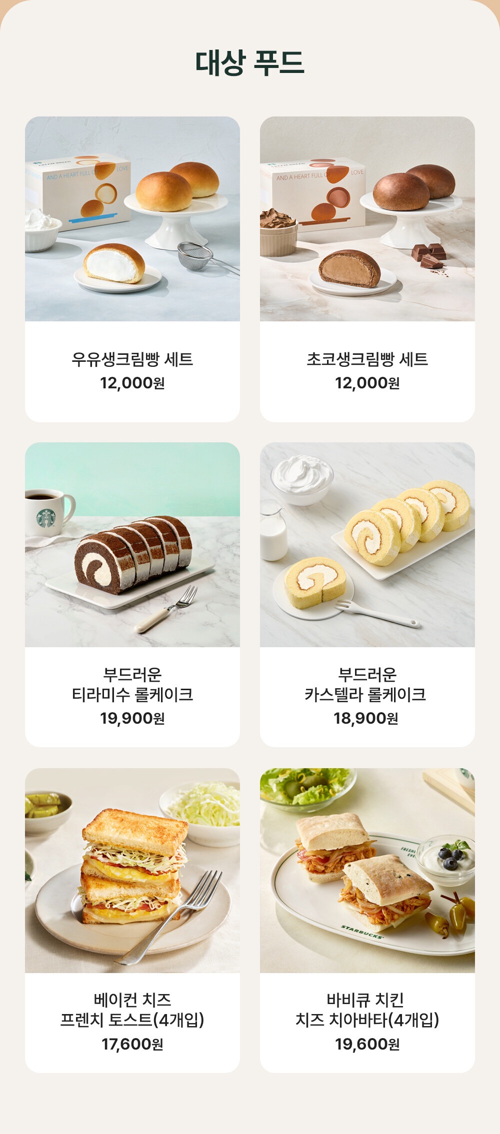 이번 이벤트 대상 푸드는 낱개가 아닌 세트 구성이나 대용량(롤케이크/식사빵) 위주로 구성되어 있습니다. 홈파티나 사무실 간식, 혹은 냉동실에 쟁여두고 먹기 좋은 품목들입니다.