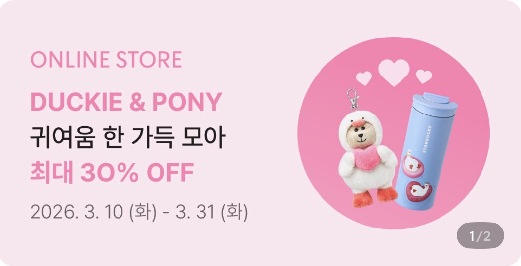 안녕하세요! 오늘은 스타벅스 매니아분들의 지갑을 열게 할 귀여운 소식을 하나 가져왔습니다. 바로 스타벅스 온라인 스토어에서 단독으로 진행되는 '더키 & 포니 프렌즈 컬렉션(DUCKIE & PONY FRIENDS COLLECTION)' 할인 이벤트입니다.