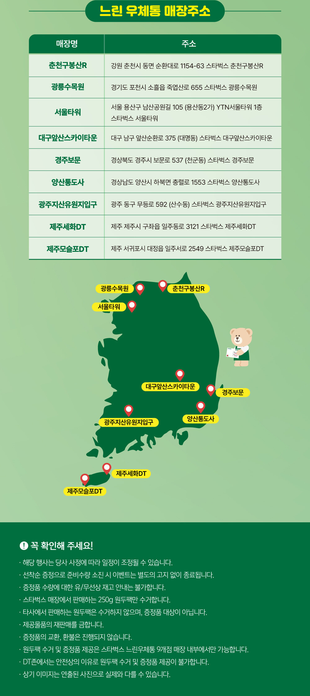 이번 행사는 전국 모든 매장이 아닌, "느린 우체통"이 설치된 아래 9개 매장에서만 진행됩니다. 방문 전 주소를 꼭 확인하세요!
