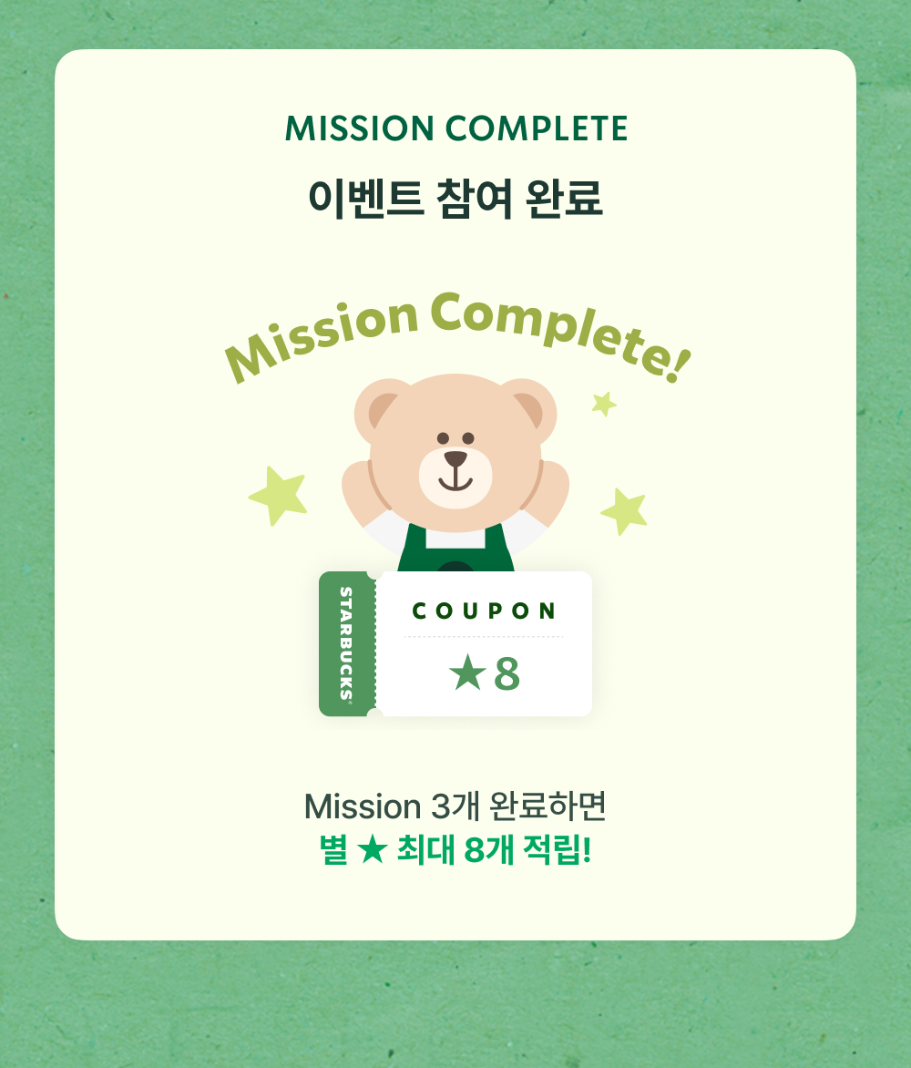 - 혜택: 스타벅스 리워드 별 1개 적립