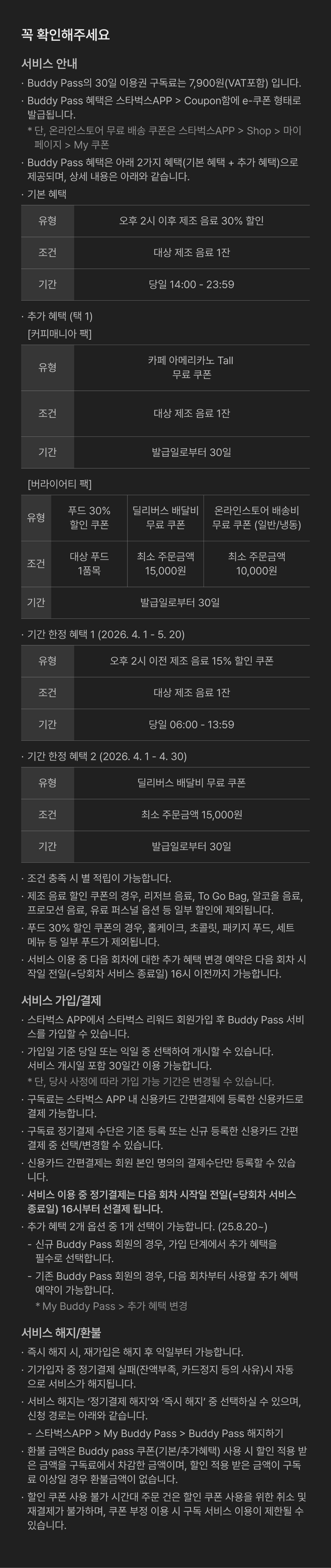 가입 및 자세한 쿠폰 유의사항 확인은 "스타벅스 APP"을 통해 가능합니다. 오늘부터 새롭게 시작되는 강력한 버디패스 혜택과 함께 커피 향 가득하고 기분 좋은 4월을 시작해 보시길 바랍니다!
