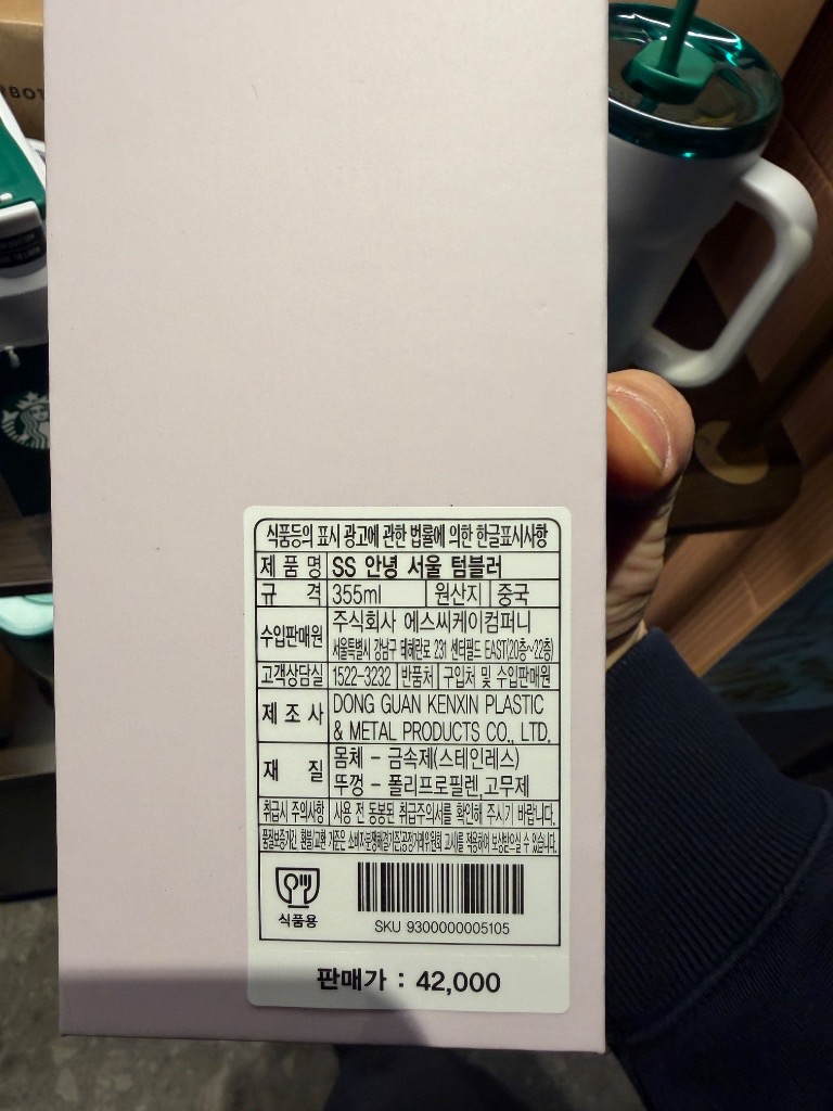 | SS 텀블러 (355ml) | 42,000원 | 스테인리스 재질, 보온보냉 기능 |