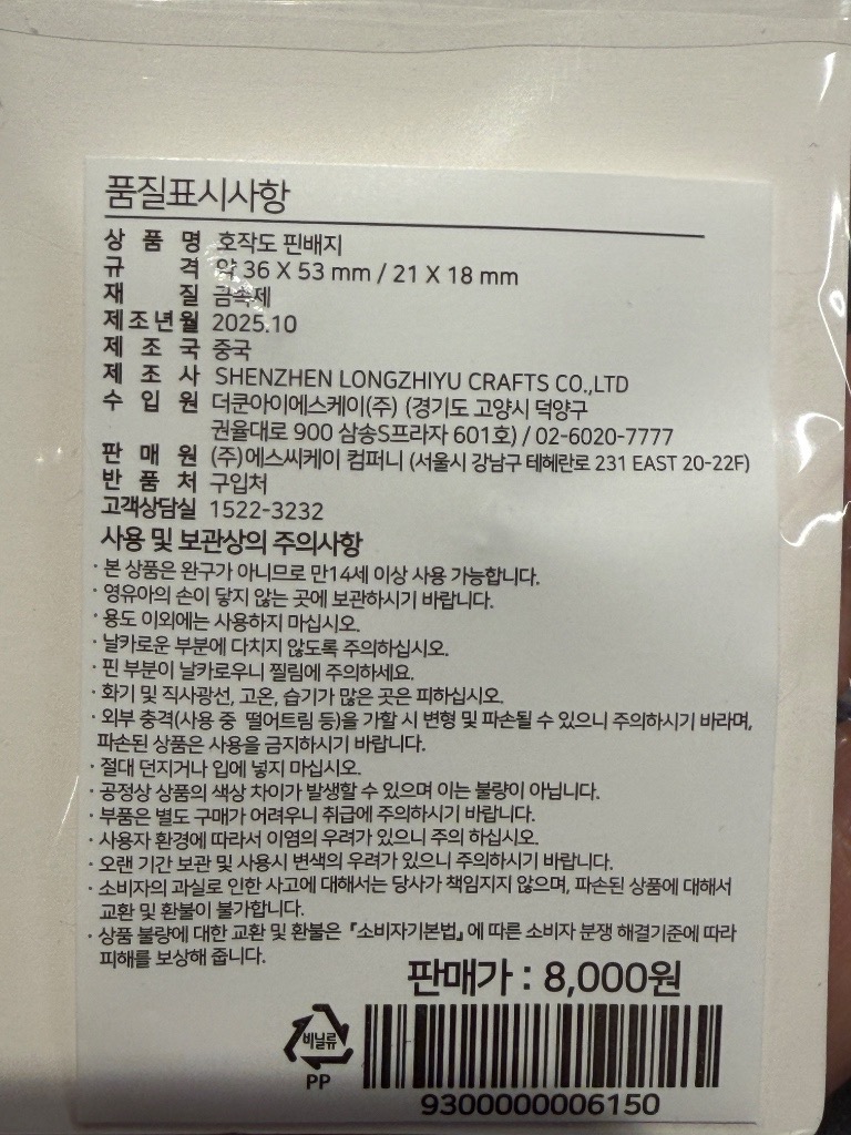 - 추천: 호작도 핀 배지 (8,000원)